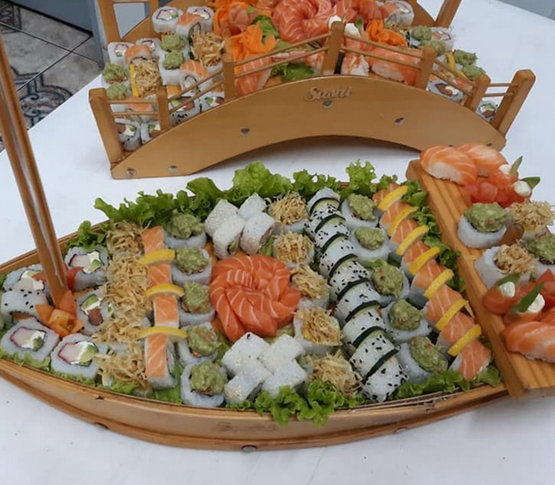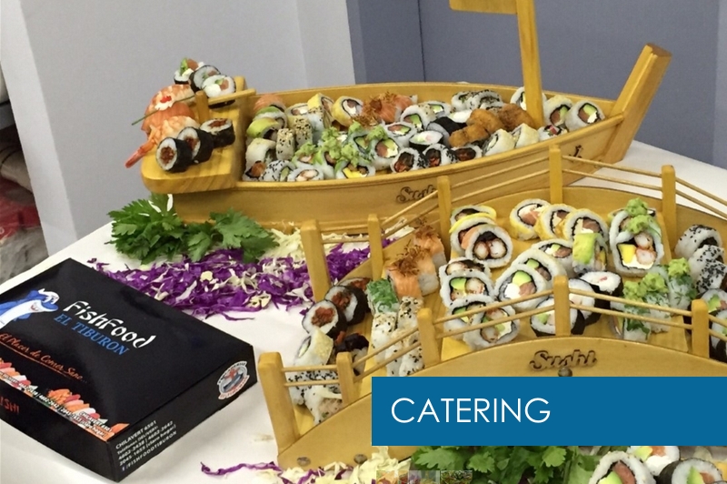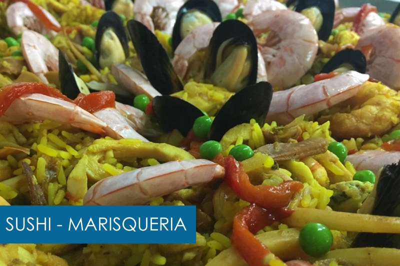 Brochette de Langostinos – Salmón con Crema de Camarones – Arroz con Calamares – Rabas Provenzal – Tablita de Mar – Bombas de Salmón y Langostino – Gambas al Ajillo – Canastitas – Fatay de Calamar – Empanadas – Copas de Camarón – Trucha grillada – Gran Paella – Lenguado al Roquefort – Arrollado de Merluza – Tortilla de Mejillón – Tarta Gallega – Tallarines con Crema de Langostino – Sorrentinos de Salmón – Ensalada de Mariscos – Ceviches – Pizzas de Mariscos – Chop Shuey de Mariscos – Yakimeshi de Mar – Sushi Vegetariano – Tiraditos de Salmon – Temakis – Roll Especiales – y más…