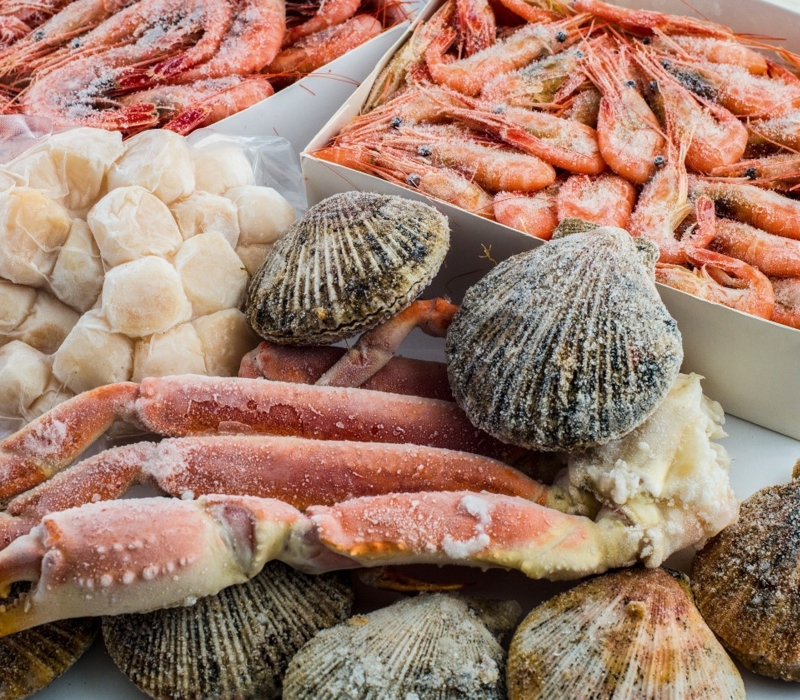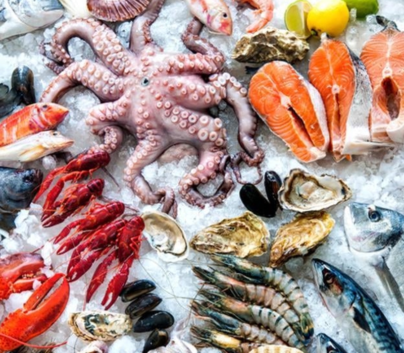 Merluza – Besugo – Anchoas - Bacalao Noruego – Boga - Atún - Bonito – Pez Ángel – Merluza Negra – Cachetes de Abadejo – Cornalitos – Pejerrey Despinado – Salmón Blanco – Salmón Rosado – Salmón Ahumado – Truchas Bariloche – Corvinas – Dorados – Lenguado – Pati – Pescadilla – Róbalo – Pez Limón – Surubí – Calamares – Pulpos – Rabas – Anchoitas y Boquerones – Caviar – Tentáculos – Almejas – Berberechos – Camarón – Vieiras – Caracoles – Centolla – Langostinos – Mejillones – Ostras – y más…